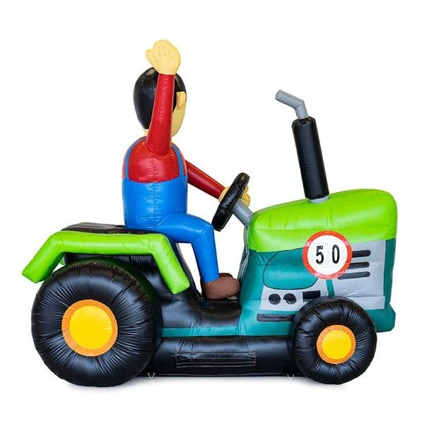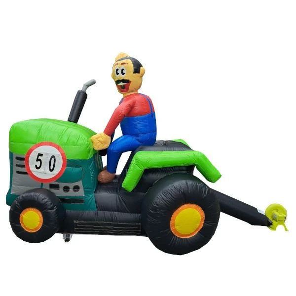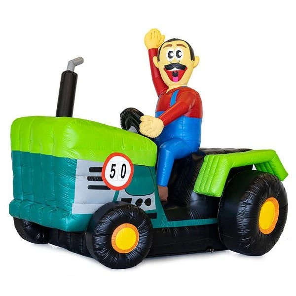 Deze opblaasbare trekker of traktor wordt veel verhuurd! De Abraham op de trkker is ludiek naar iedere jarige!