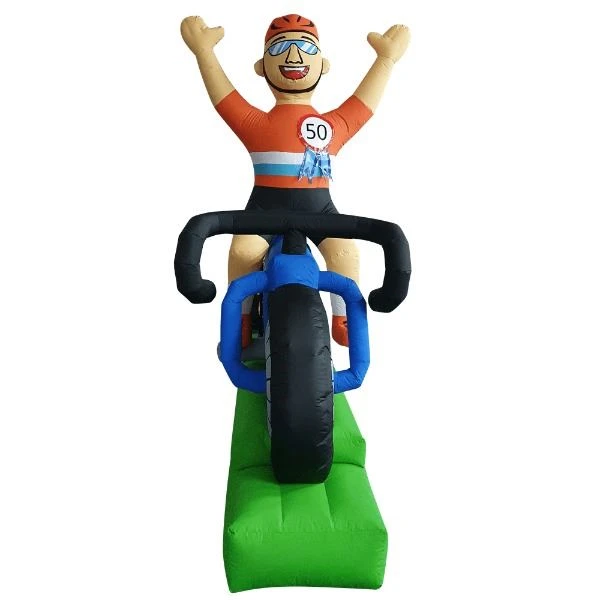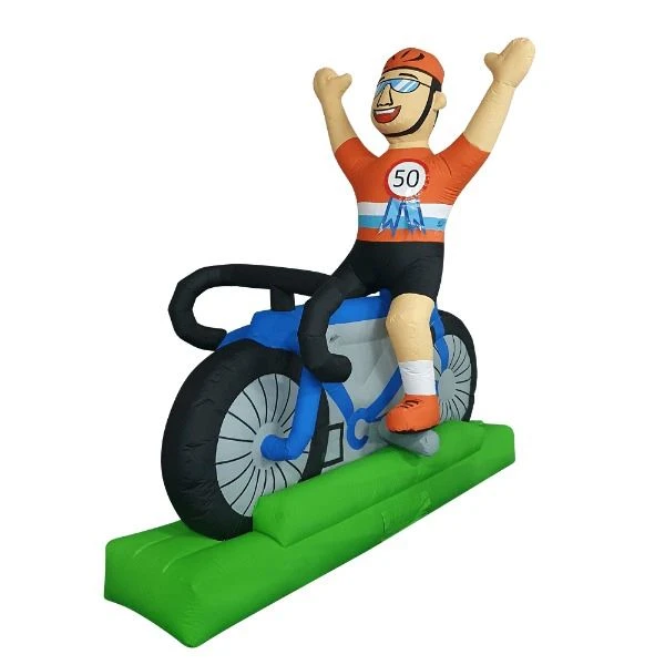Deze opblaasbare abraham op een fiets wordt veel verhuurd voor wielerfanaten! De Abraham op de fiets is toepasselijk voor wielerfans!