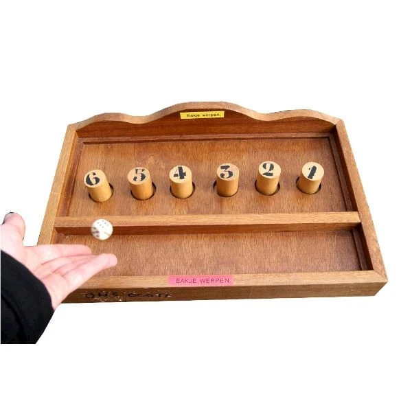 Zet de tonnetjes/bakjes in de gaten van het bakje. Gooi met de dobbelsteen, en maak aan de hand van het aantal ogen een keuze welke tonnetjes u wilt wegnemen. (deze moet je even bij je houden)