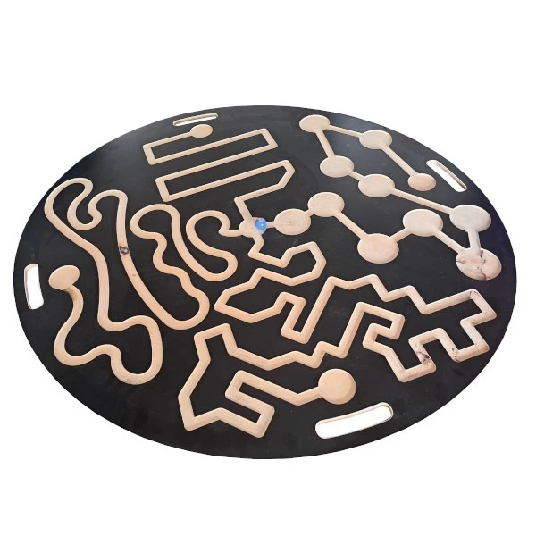 Laat het balletje rollen over het parcours dat op de disc is uitgezet. Pas op! Het balletje mag niet vallen of van de baan afgaan. Om het nog spannender te maken hebben we 2 van deze balanceer disc's. Zodat er met een team tegen elkaar gespeeld kan worden.