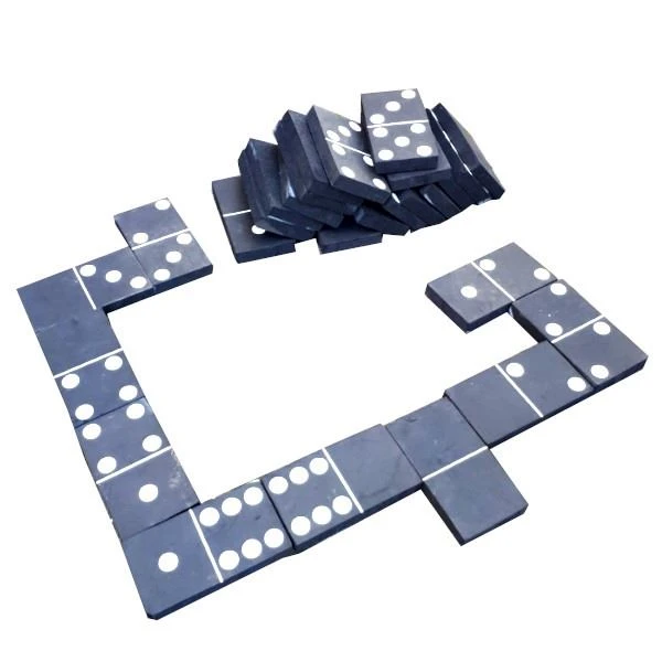 De set bestaat uit 28 dominostenen van 20 cm x 8 cm.