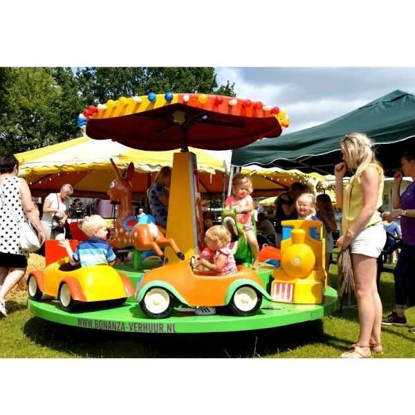 Onze kleine draaimolen is speciaal ontworpen voor jonge kinderen. Doordat hij lekker compact is, voelen de kinderen zich veilig en kunnen ze altijd papa of mama in de buurt zien. Het is een leuke attractie voor kinderen die eenvoudig online te boeken is.
