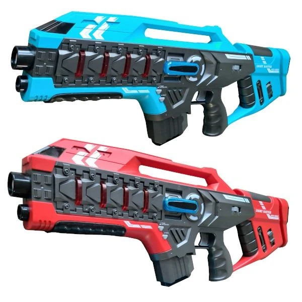 De lasergame set kun je per geweer bestellen. Ze worden in 4 kleuren uitgeleverd namelijk de kleuren rood, blauw, geel en groen. U krijgt van elke kleur dus een aantal stuks. U kunt dan in teams van 4 spelen, maar ook in teams van 2. U kunt de geweren instellen bij welk team ze horen. De set is eenvoudig in te stellen en u krijgt automatisch een handleiding toegestuurd!
