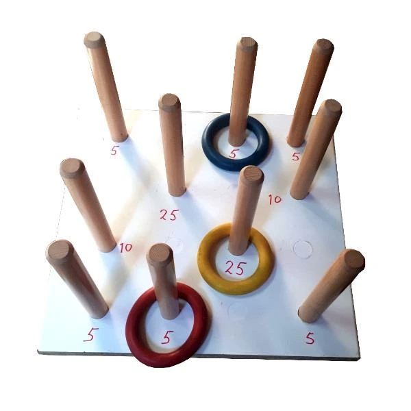 Probeer de ringen om de haken te gooien met de verschillende punten. Probeer zo veel mogelijk punten te behalen.
