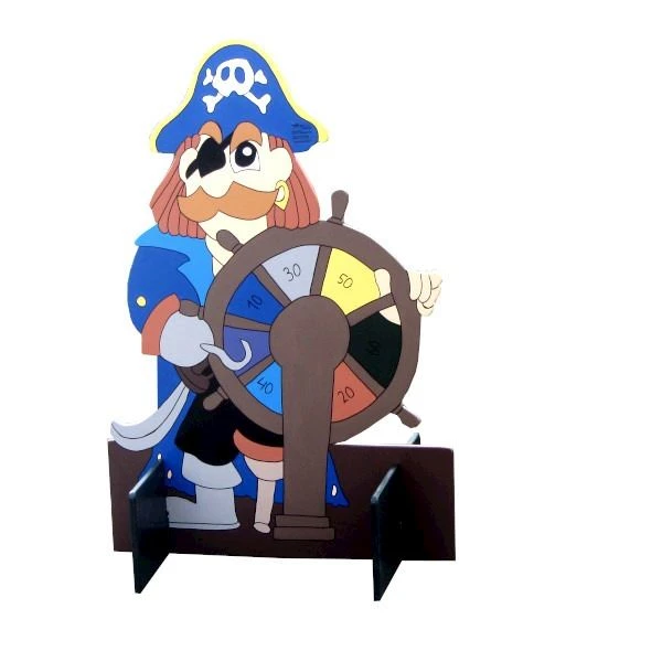 Schiet met het pistool op de piraat. Door de zuignapjes blijven de pijlen op de piraat zitten. Probeer zoveel mogelijk punten te schieten!