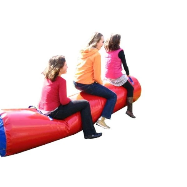 U krijgt een pomp om er lucht in te blazen bij. (op de afbeelding 4 persoons afgebeeld)