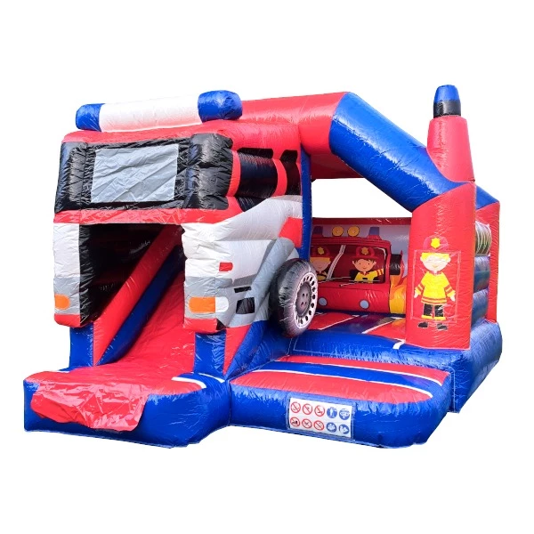 Springkussen brandweer🚒 met glijbaan & dak