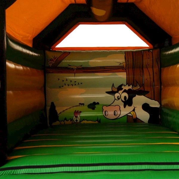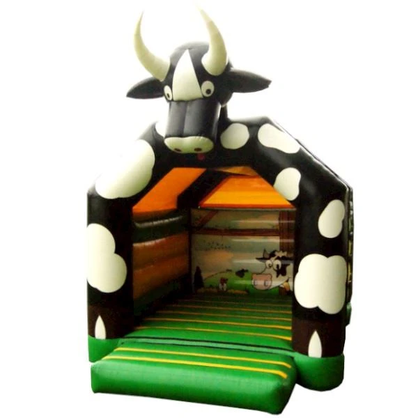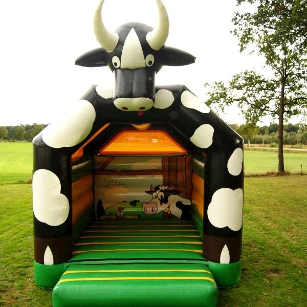 Een springkussen dat geschikt is voor een regenachtige dag! Door het dak dat geen regen doorlaat kunnen de kinderen zich prima amuseren! Een ideaal springkussen voor een lentedag of herfstdag waar de kans op regen wat groter is. Ook kan het springkussen dienen als zonbescherming. Bovenop het dak zit een grote koeienkop die toekijkt op de kinderen.