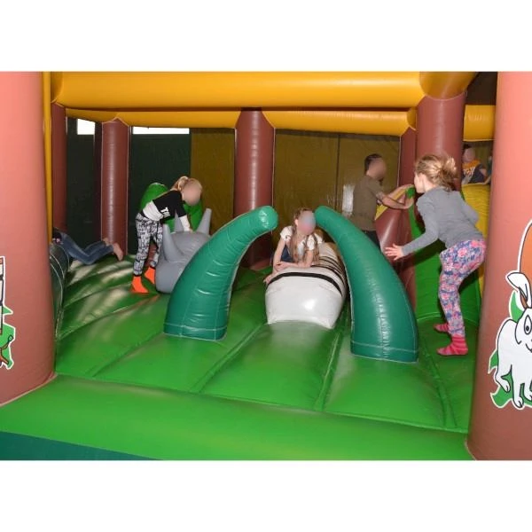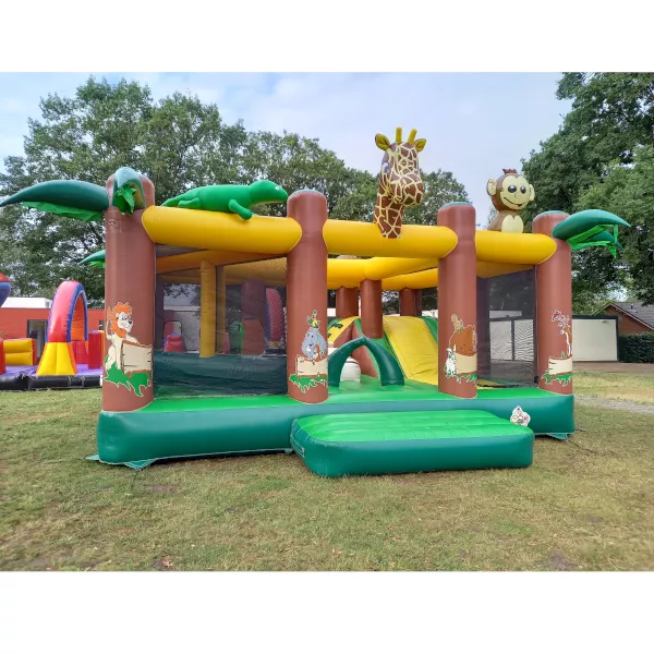 Een mega springkussen! Klimmen, glijden, duiken en opblaasbare objecten in het springkussen! Op dit springkussen dat geschikt is voor evenementen en grote feesten kunnen zich veel kinderen vermaken.