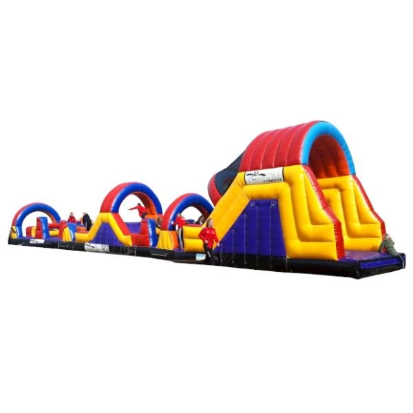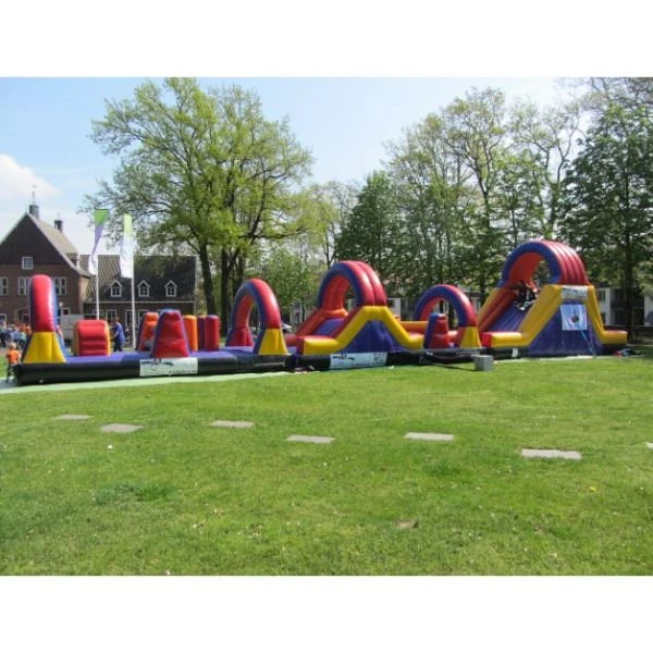 Een stormbaan bestaande uit 3 delen, de klim/glijbaan, survivalbaan en de hindernisbaan. Een stormbaan van 24 meter lang. Geschikt om meerdere kinderen te vermaken of juist een spel element mee te doen.