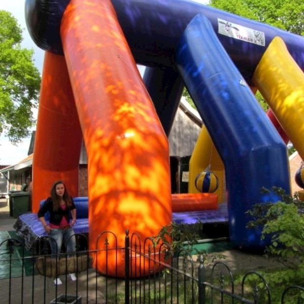 Wees gerust dit komt (bijna) nooit voor. Aangezien we zelf leveren waarschuwen we bij storm of een te hoge windkracht. We houden rekening met de weersomstandigheden. Bij windkracht 6 of hoger moet de attractie stop gezet worden! De kinderen moeten dan gelijk uit de attractie en de blazer moet uit. Wanneer we het niet veilig vinden, zullen we in overleg de attractie niet plaatsen.