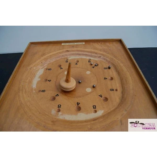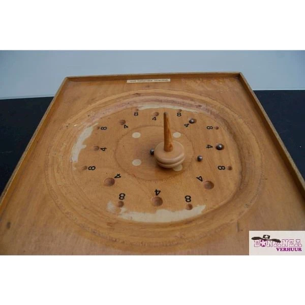 Leg de balletjes in de bak en ga met de tol draaien. Zorg dat de balletjes in de gaatjes vallen en verdien deze punten. Je mag 3 keer draaien. Diegene met de meeste punten wint.