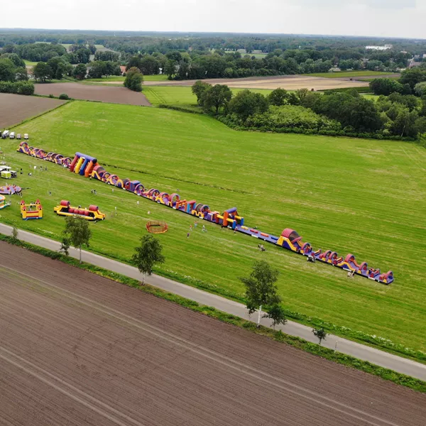 Wel zo gemakkelijk! Je geeft online bij de boeking de tijd door dat we het moeten leveren en de tijd dat we het weer op kunnen halen. Wij zorgen voor de opbouw van de stormbaan. We hebben alleen een stroompunt nodig op de plek van de stormbaan.