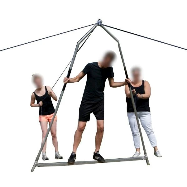 Stap in de wandelende A. Teamgenoten moeten zorgen dat je zo snel mogelijk vooruit komt en je in balans houden.